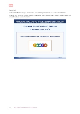 Se informará a las familias, que esta 3ª sesión se centrará específicamente en el autocuidado familiar.