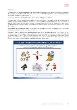 Se irán ofreciendo algunas sugerencias para la mejora del autocuidado de las familias, en las distintas áreas de