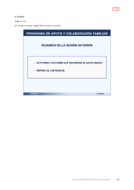 4ª SESIÓN Diapositiva 1 Se realiza el repaso habitual de la sesión anterior. Guía de intervención familiar en la esquizofrenia 283