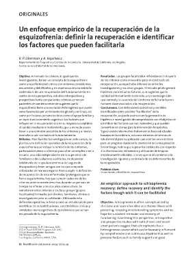 recuperado de la esquizofrenia. hope for sustained remission and recovery of