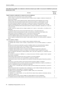 Tabla 2.Elementos incluidos como estándares o elementos necesarios para incluir en el proceso de rehabilitación psicosocial
