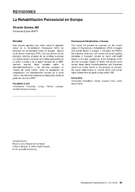 actual de la Rehabilitación Psicosocial (RPS) de status of Psychosocial Rehabilitation (PSR) of people