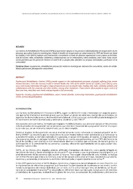 Palabras clave: recuperación, rehabilitación psicosocial, trastorno mental grave, intervención comunitaria, centro de rehabi-