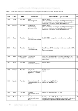 Tabla 2. Resumen de la evidencia de los efectos de los programas de primeros auxilios en salud mental.