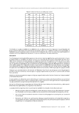 cómo ambos grupos han mejorado en canto a la percepción de calidad de vida (cabe destacar que el progra-