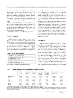 TABLA 2. Correlaciones entre las variables neuropsicológicas y clínicas