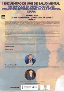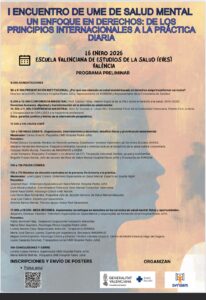 La Escuela Valenciana de Estudios de la Salud (EVES) será, el próximo 16 de enero, la sede del I Encuentro de Unidades de Media Estancia (UME) de Salud Mental, una jornada pionera que reunirá a profesionales, expertos por experiencia, instituciones y entidades del ámbito de la salud mental para impulsar un cambio de modelo basado en los derechos humanos, la dignidad y la autonomía de las personas.